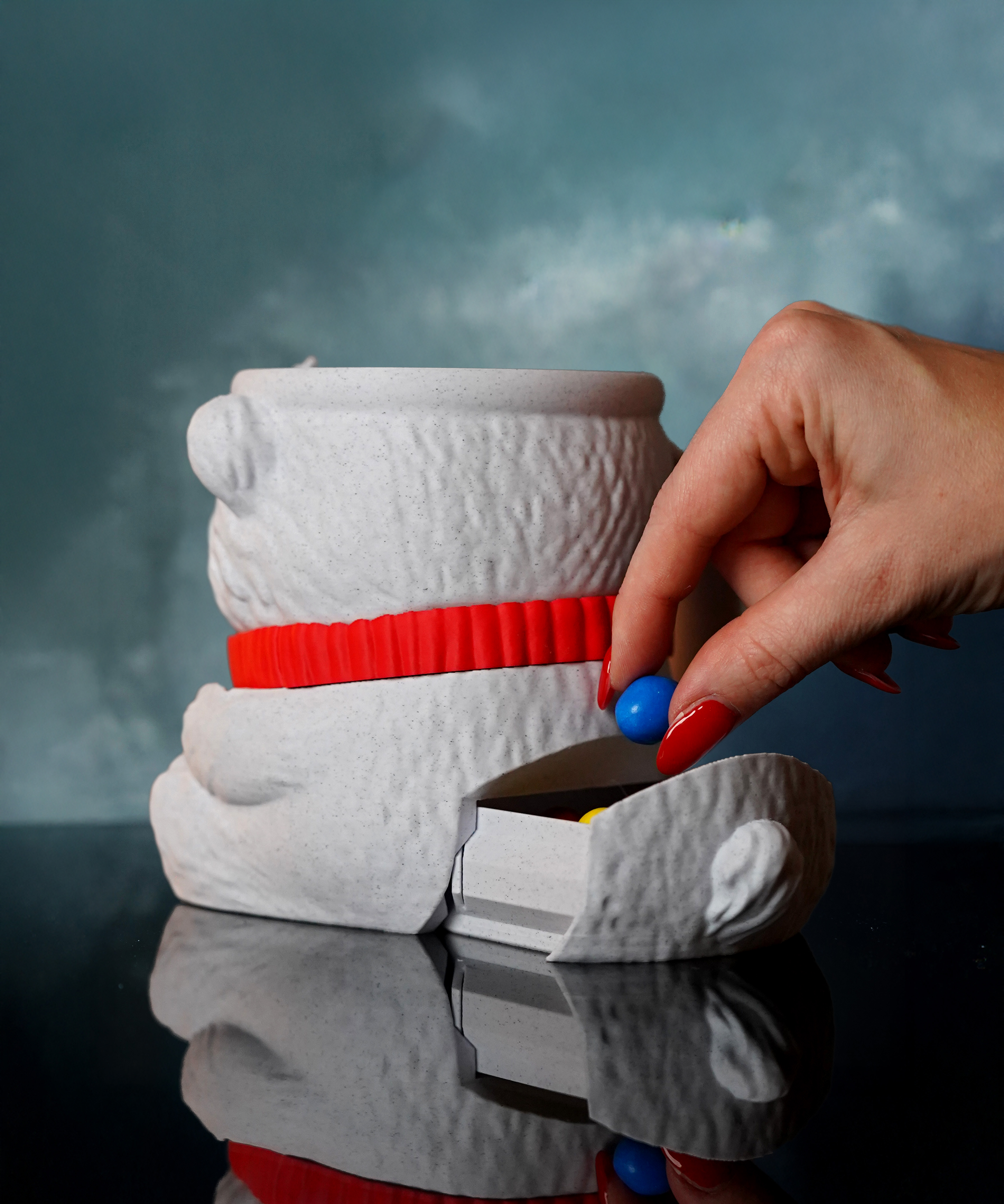 Pawblo fits all standard ice cream pints (like Ben & Jerry’s, Häägen-Dazs, etc.) and comes with a comfy handle, spoon slots in the paws, and even an option for a hidden storage drawer for snacks or candy. 🍬